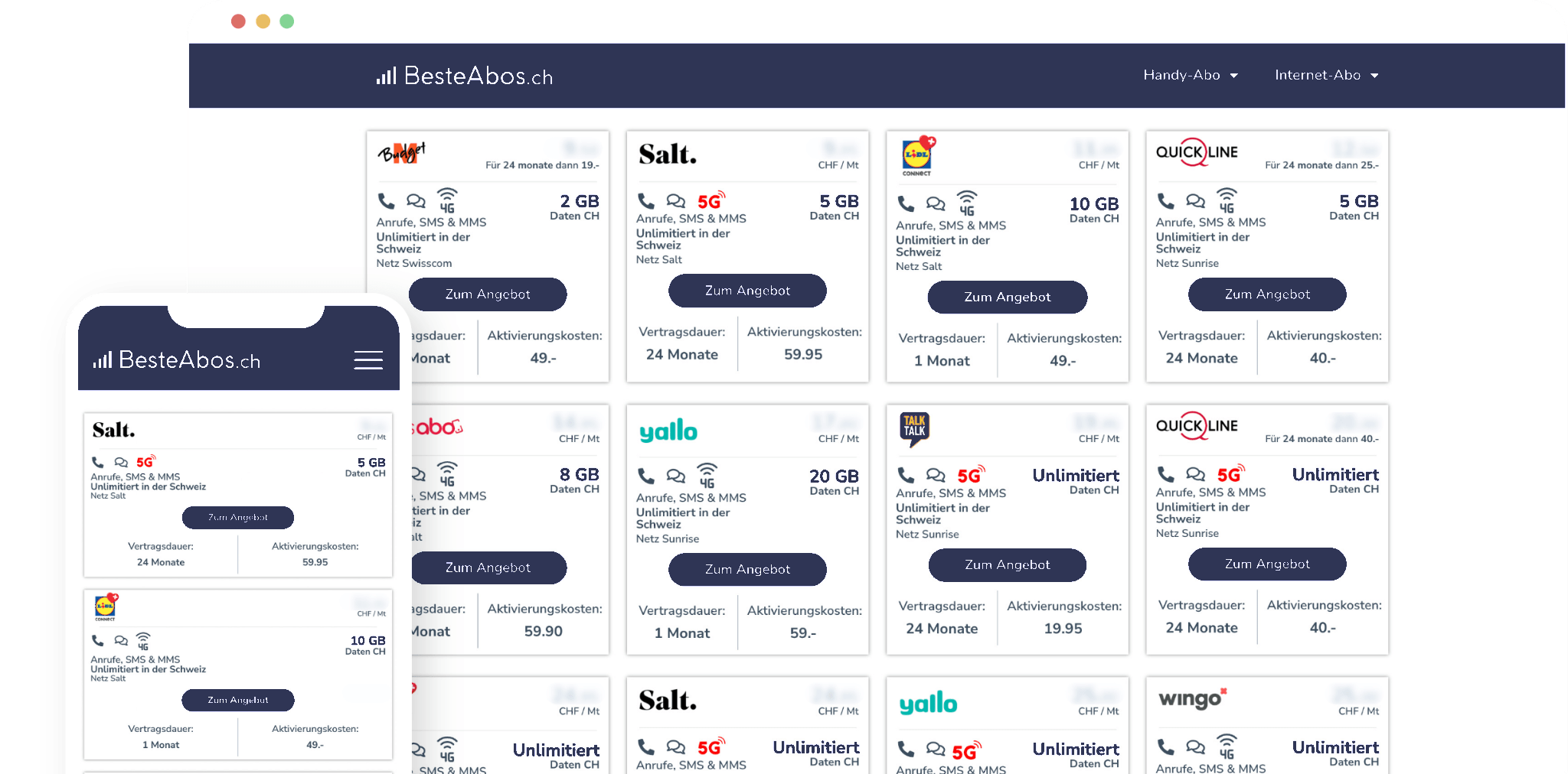 Die günstigsten Handy-Abos und Internet Abos der Schweiz im Vergleich